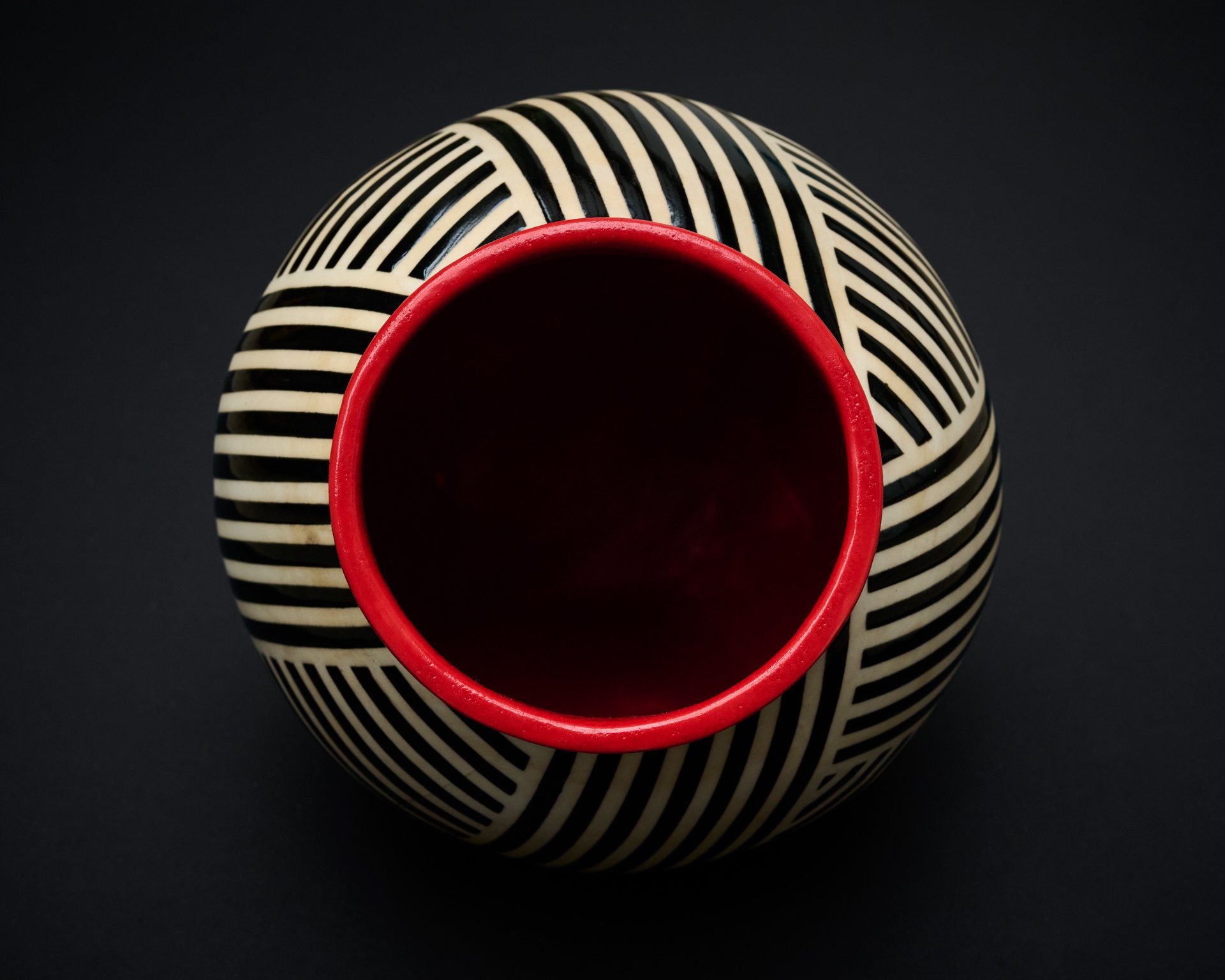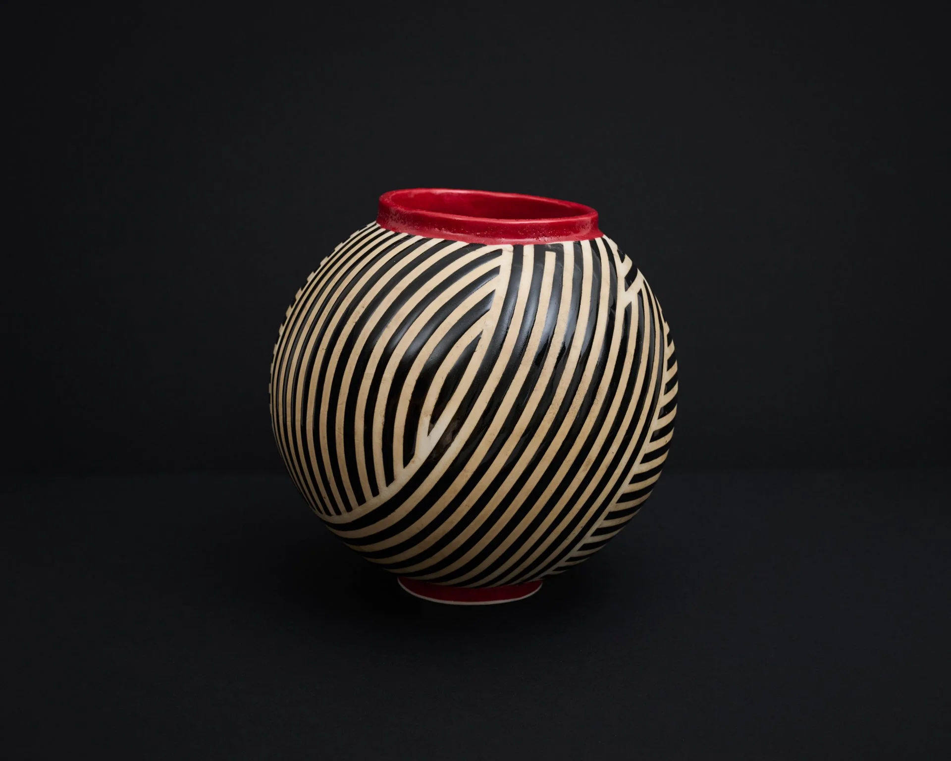 I combine my interests in art, architecture, maths and geometry by making moon jars and functional slab-built pottery decorated with bold geometric patterning.